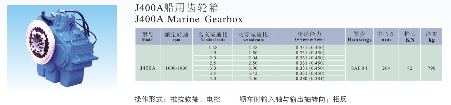 | 前進名義減速比: | 1.38 | 輸入轉(zhuǎn)速: | 1000-1800rpm |