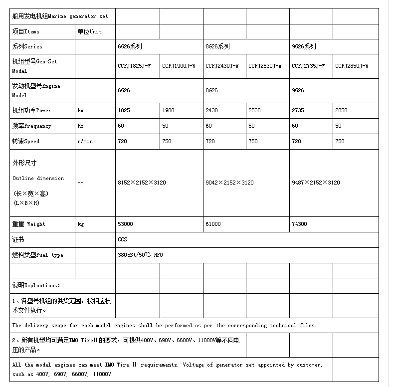 發(fā)動(dòng)機(jī)型號(hào): 6G26 重量: 53000kg