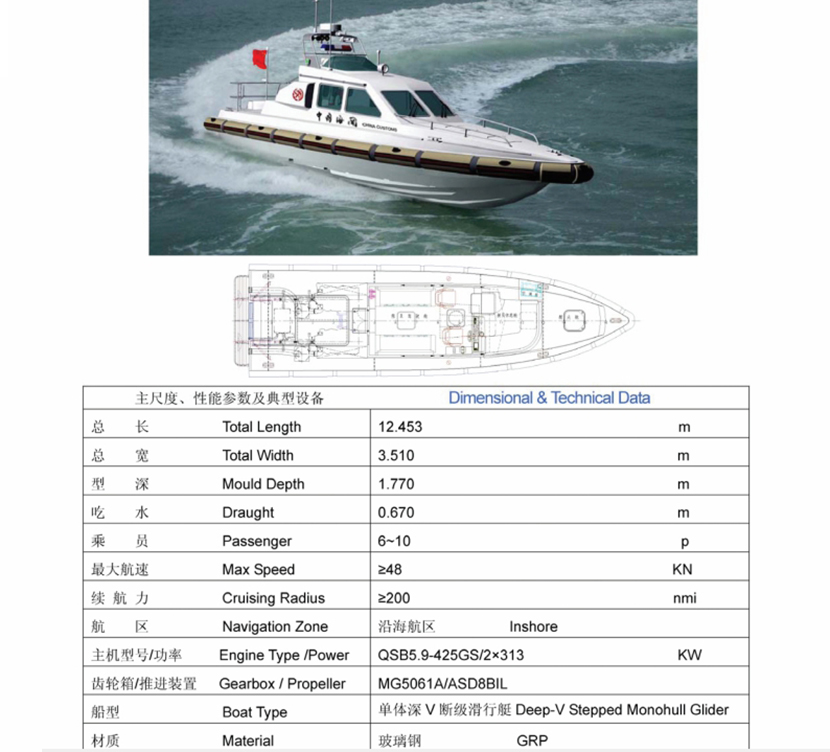 總長(zhǎng): 12.453m 航速: 48kn
