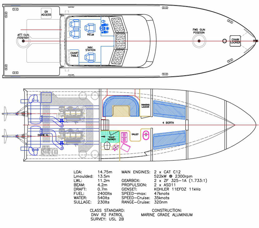 總長: 14.75m 航速: 35kn