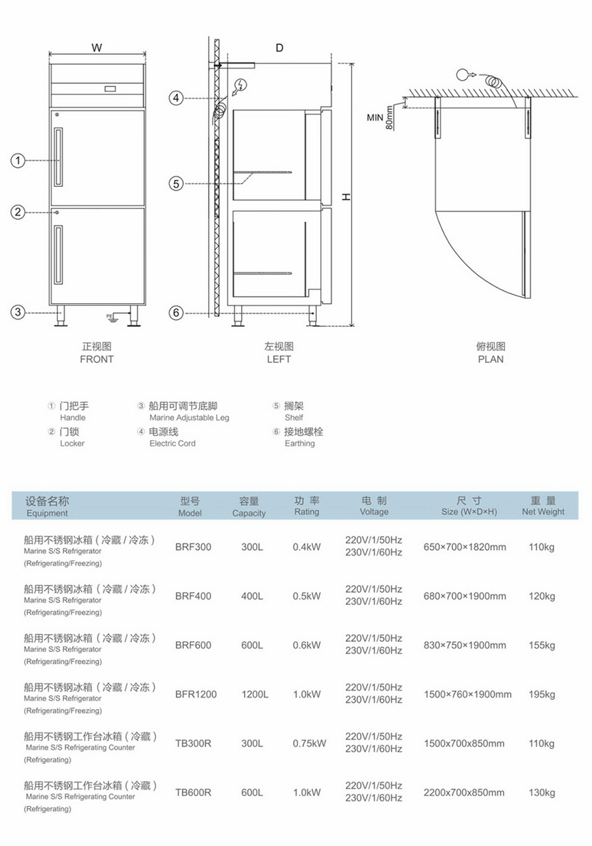 | 船用不銹鋼電冰箱(冷藏&冷凍) | |||