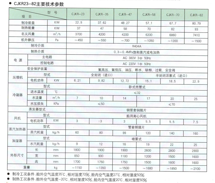 蒸發器型式: 銅管套銅翅片 風機型式: 船用離心風機