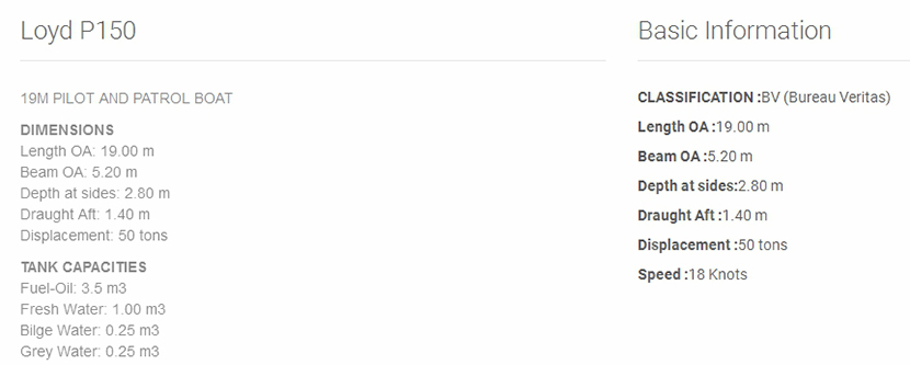 | 總長: | 19.00m | 航速: | 18kn |
