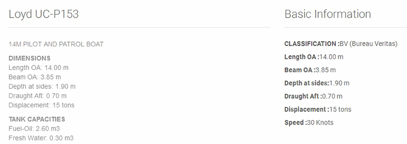 | 總長: | 14.00m | 航速: | 30kn |