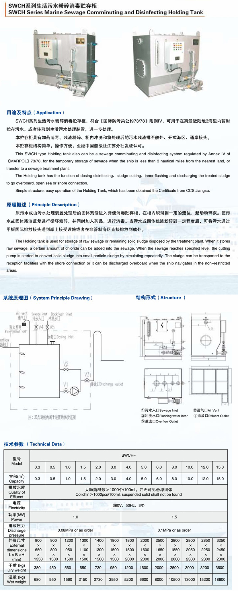 電源: 380V、50Hz、3Ф 排放水質: 大腸菌群數≯1000個/100ml,并無可見懸浮固體