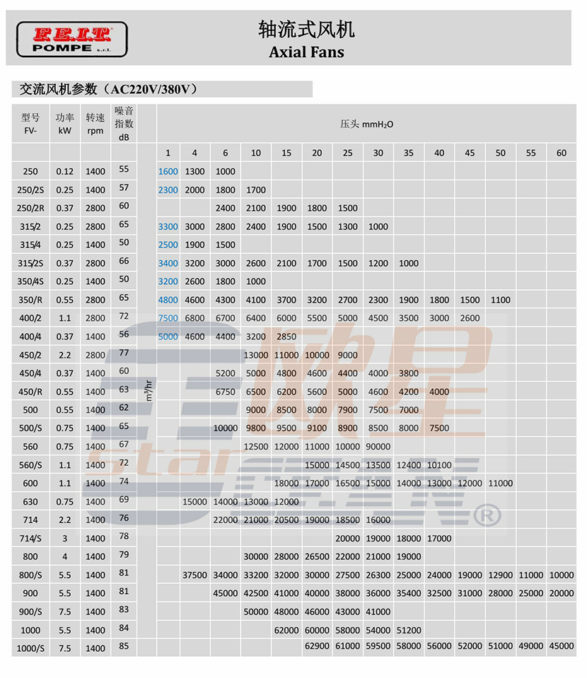 風量: 15000~10100m3/h 轉速: 1400rpm