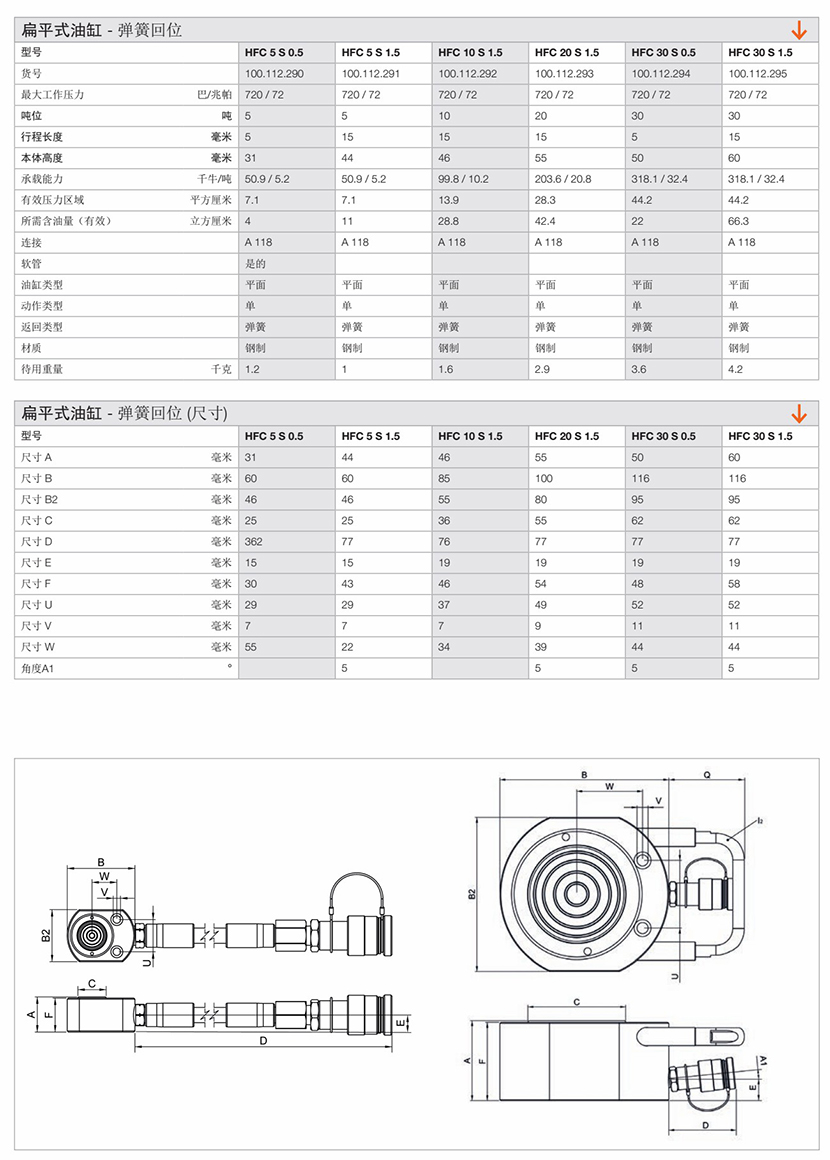 扁平式彈簧回位油缸