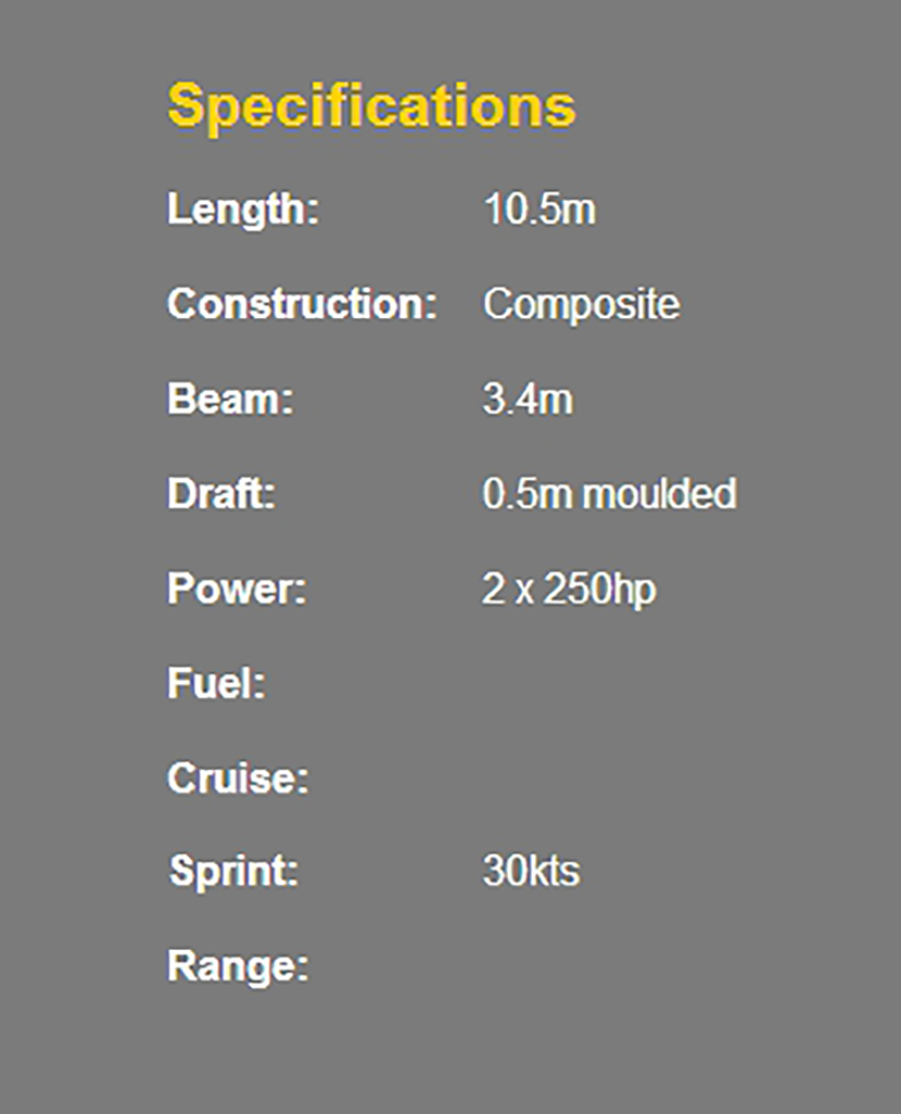總長: 10.5m 航速: 30kn