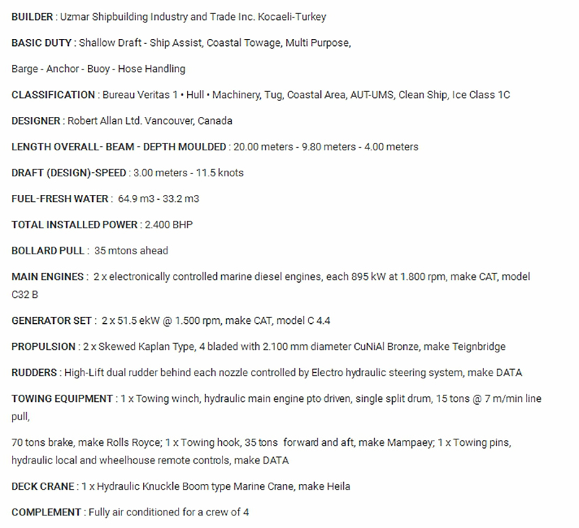 發動機功率: 2×895kW at 1800 rpm 型寬: 9.80m