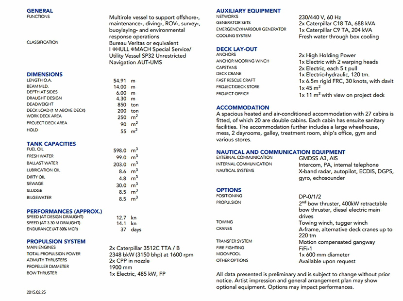 | 發電機組: | 2×Caterpilar 3512C TTA/B | 齒輪箱: | 2×Caterpillqr C18 TA,688kVA |