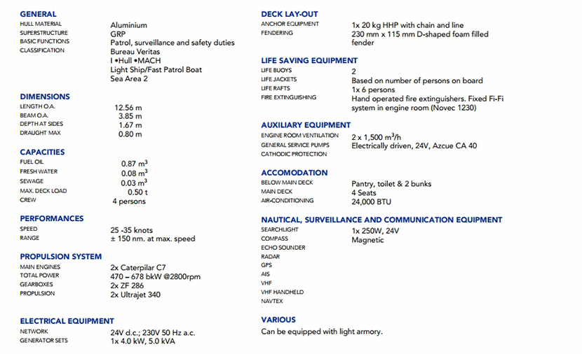 | 總長: | 12.56m | 航速: | 25kn |