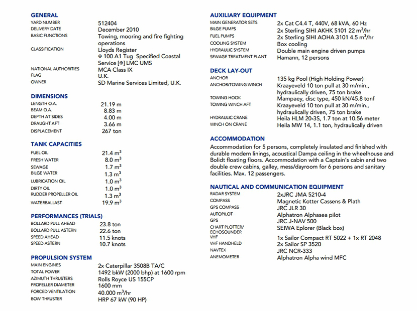 發(fā)動機(jī)品牌: Caterpilar 3508B TA/C 發(fā)動機(jī)功率: 2×746 kW at 1600rpm