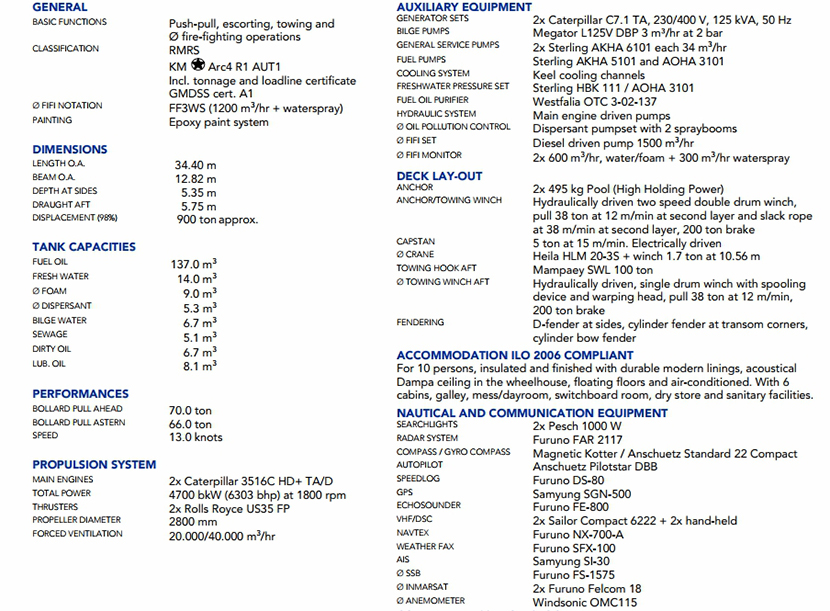 發動機品牌: Caterpilar 3516C HD TA/D 發動機功率: 2×2350 kW at 1800rpm