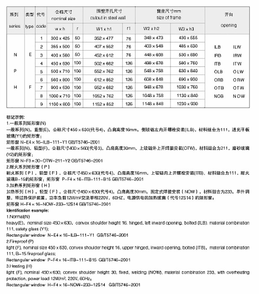 | 船用焊接安裝式普通矩形窗 | |||