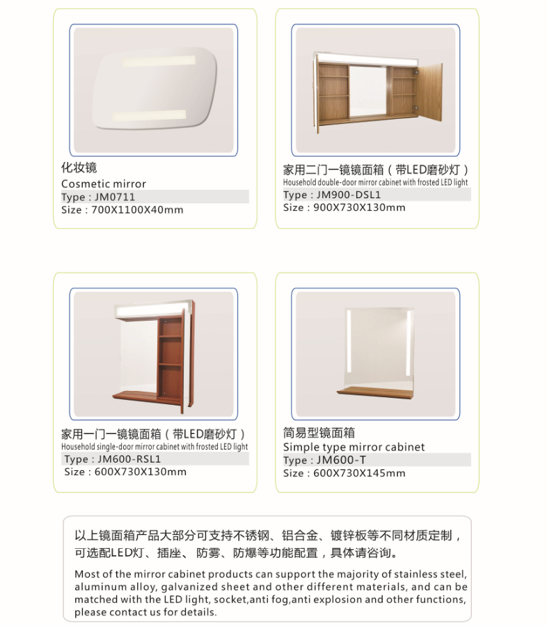 家用二門一鏡鏡面箱(帶LED磨砂燈)