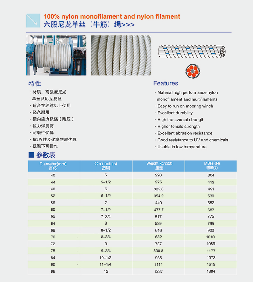 | 六股尼龍單絲(牛筋)繩 | |||
