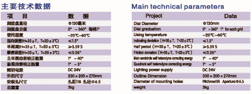 | 主半圓自差校正能量: | 1°~40° | 象限自差校正能量: | 1°~5° |