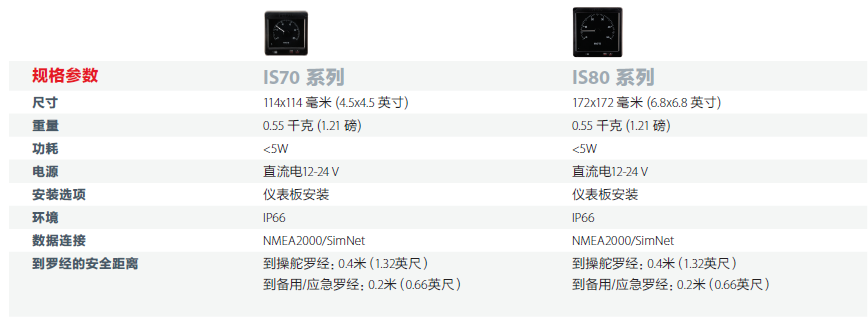 數據連接: NMEA2000/SimNet 到羅經的安全距離: 0.4米(1.32英寸)到備用/應急羅經-0.2米(0.66英尺)