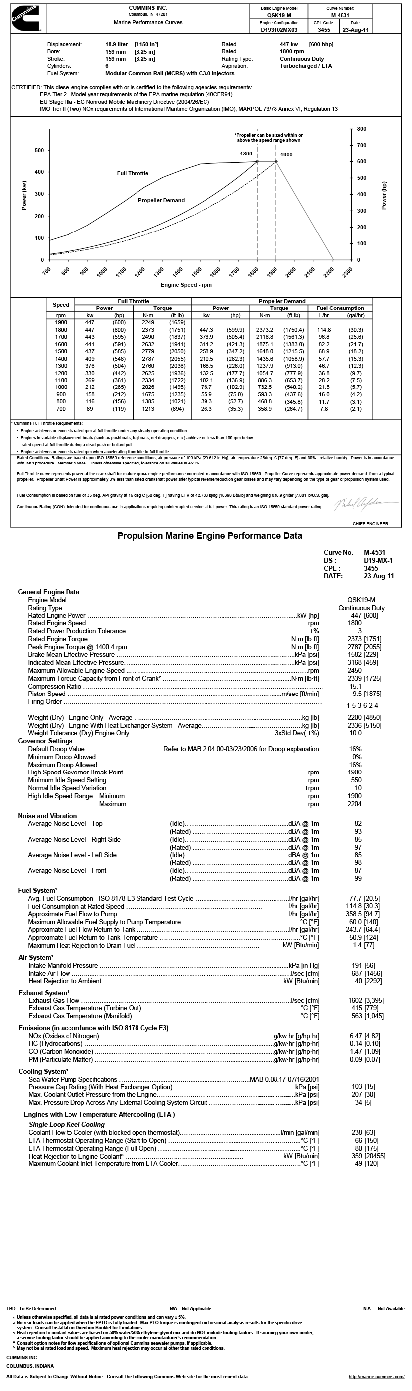 EPA Tier 2-Model year requirements of the EPA marine regulation(40CFR94);EU Stage IIIa-EC Nonroad Mobile Machinery Directive(2004/26/EC);IMO Tier II(Two)NOx requirements of International Maritime Organization(IMO),MARPOL 73/78 Annex VI,Regulation 13 |