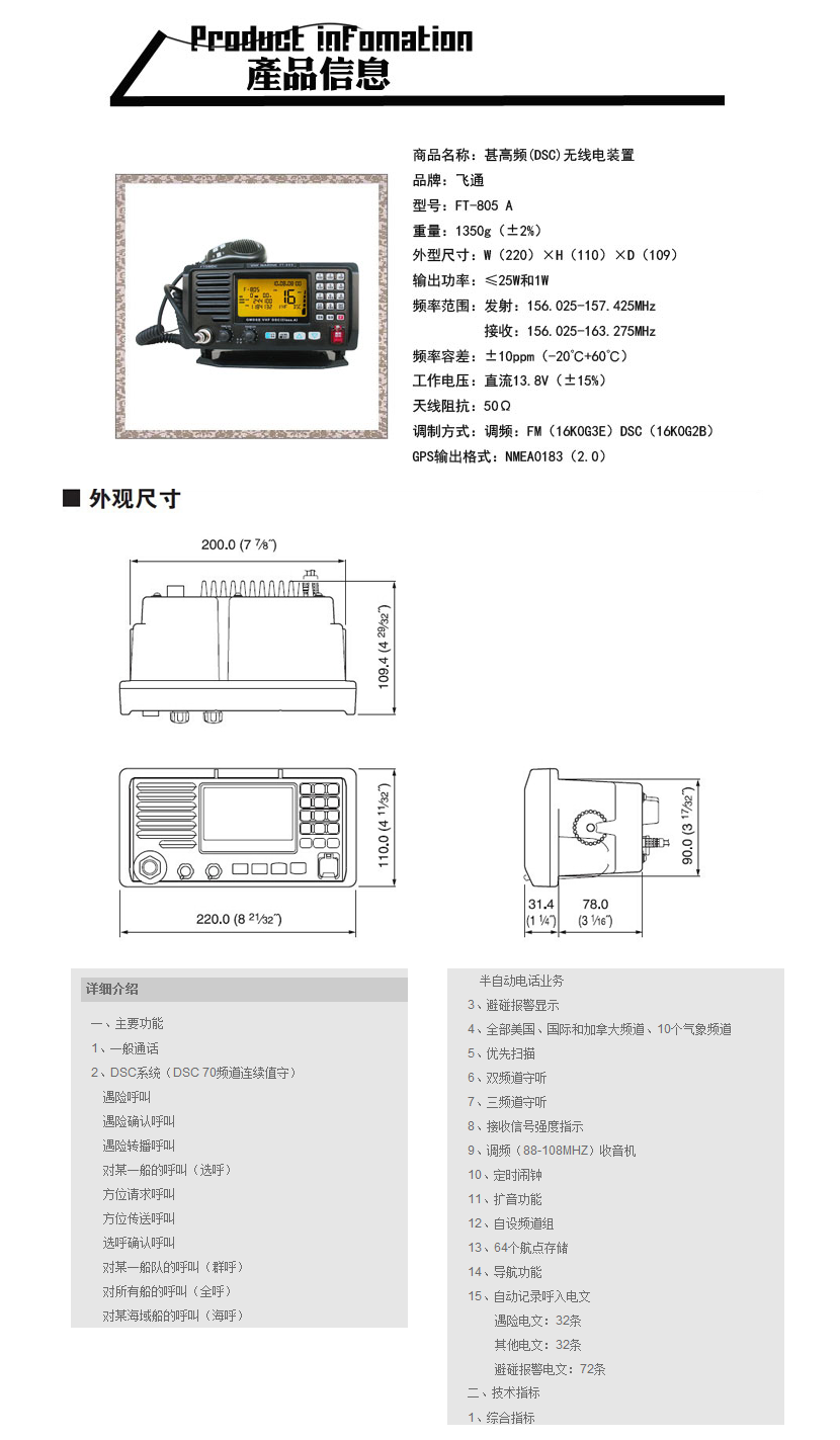 工作電壓: 13.8VDC 接收頻率: 156.025-163.275MHz