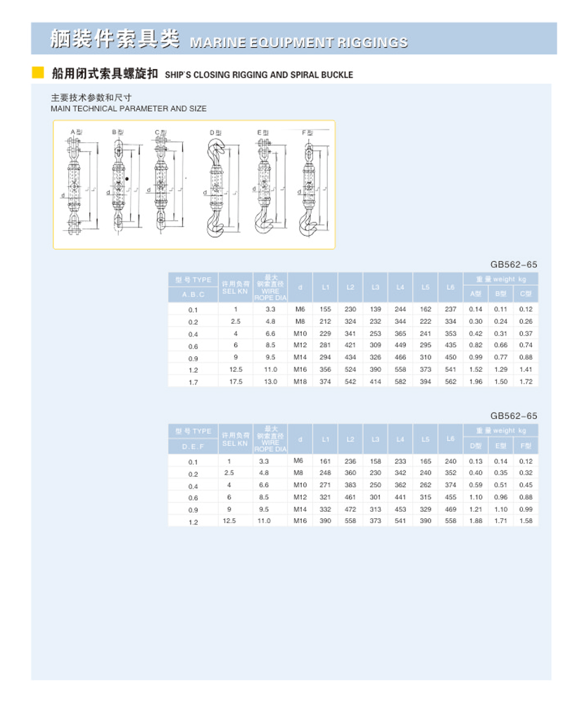 類型: 船用閉式索具螺旋扣
