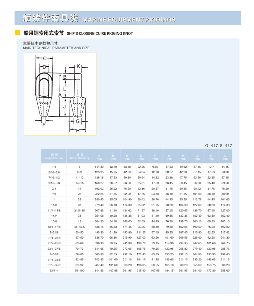 | 類型: | 船用鋼索閉式索節(jié) | ||