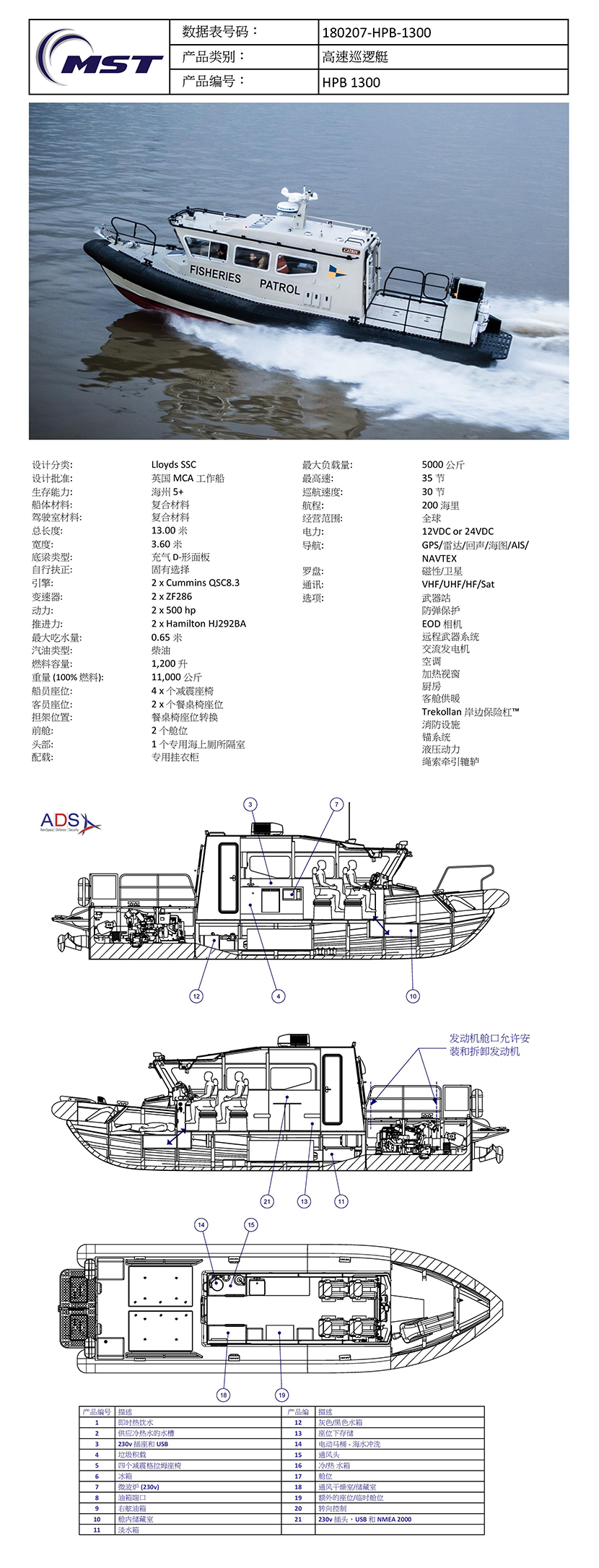 | 動力: | 2×500hp | 最大航程: | 200海里 |
