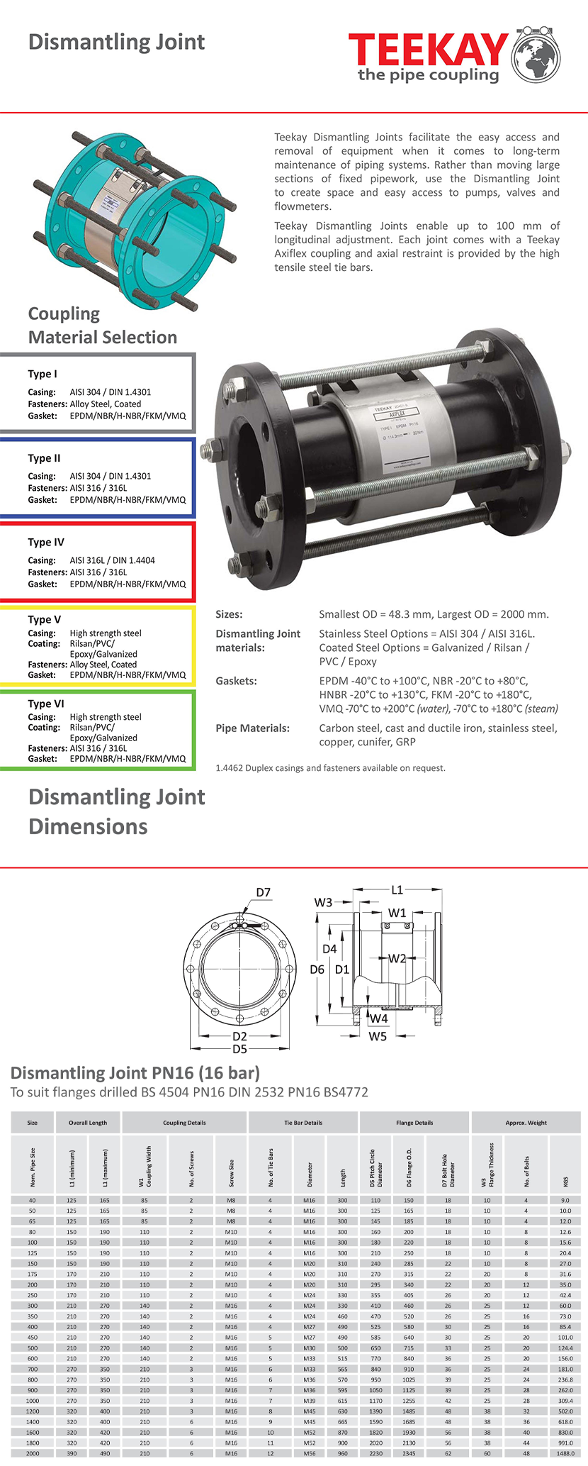 適用管道外徑: 40~2000mm 工作壓力: 16bar