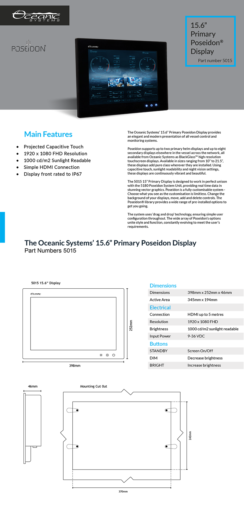 適用搭配: 至多2個主顯示器;至多8個次顯示器;Poseidon系列系統主機單元 防護等級: IP67